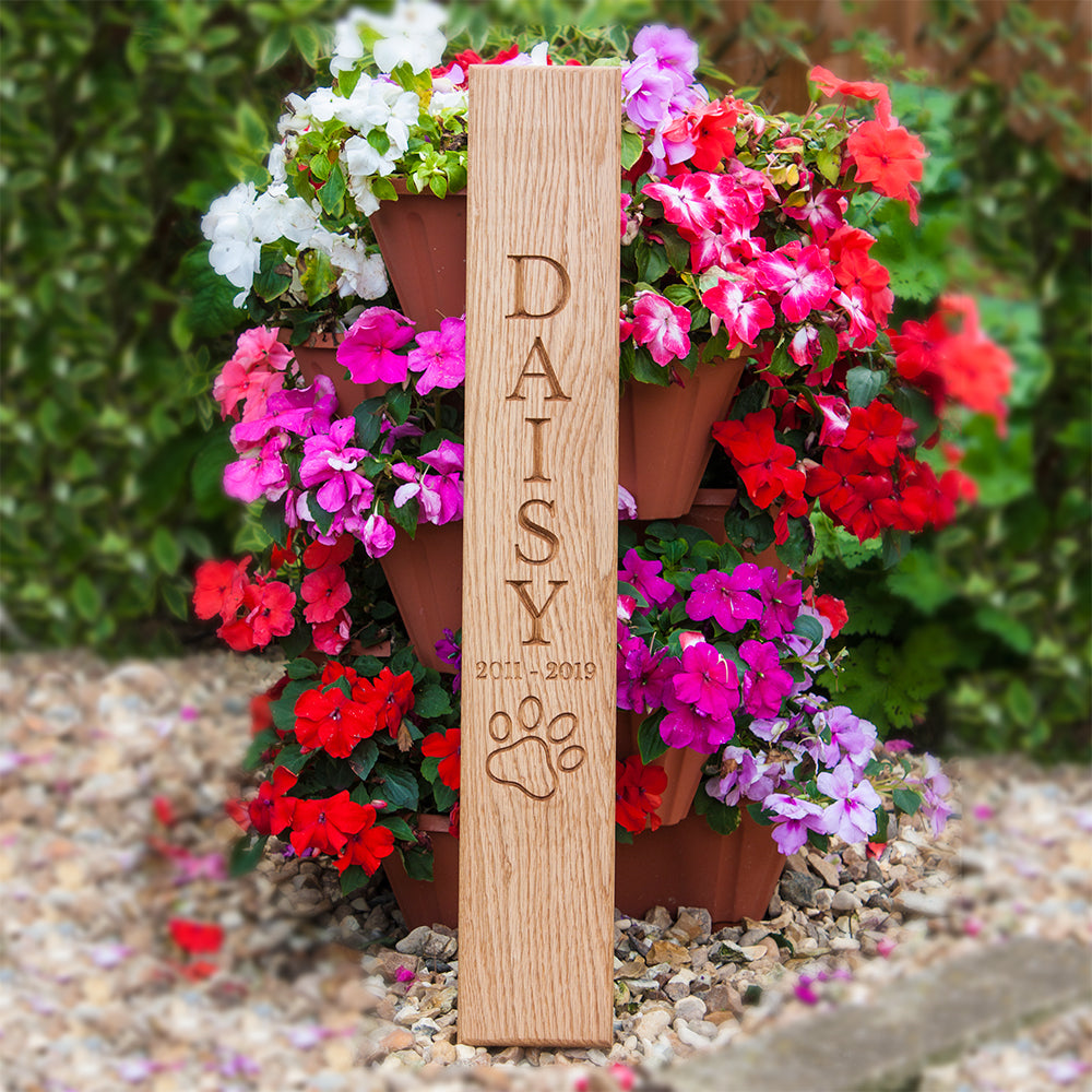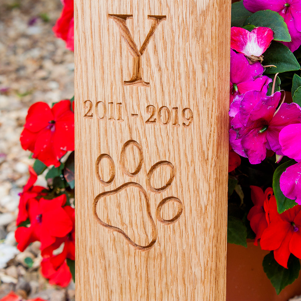 Honouring the life of a loved one can be achieved in many ways. Our Solid Oak Memorial Pet Plaques give you the opportunity to see your pets name & dates engraved in Oak to last a lifetime.