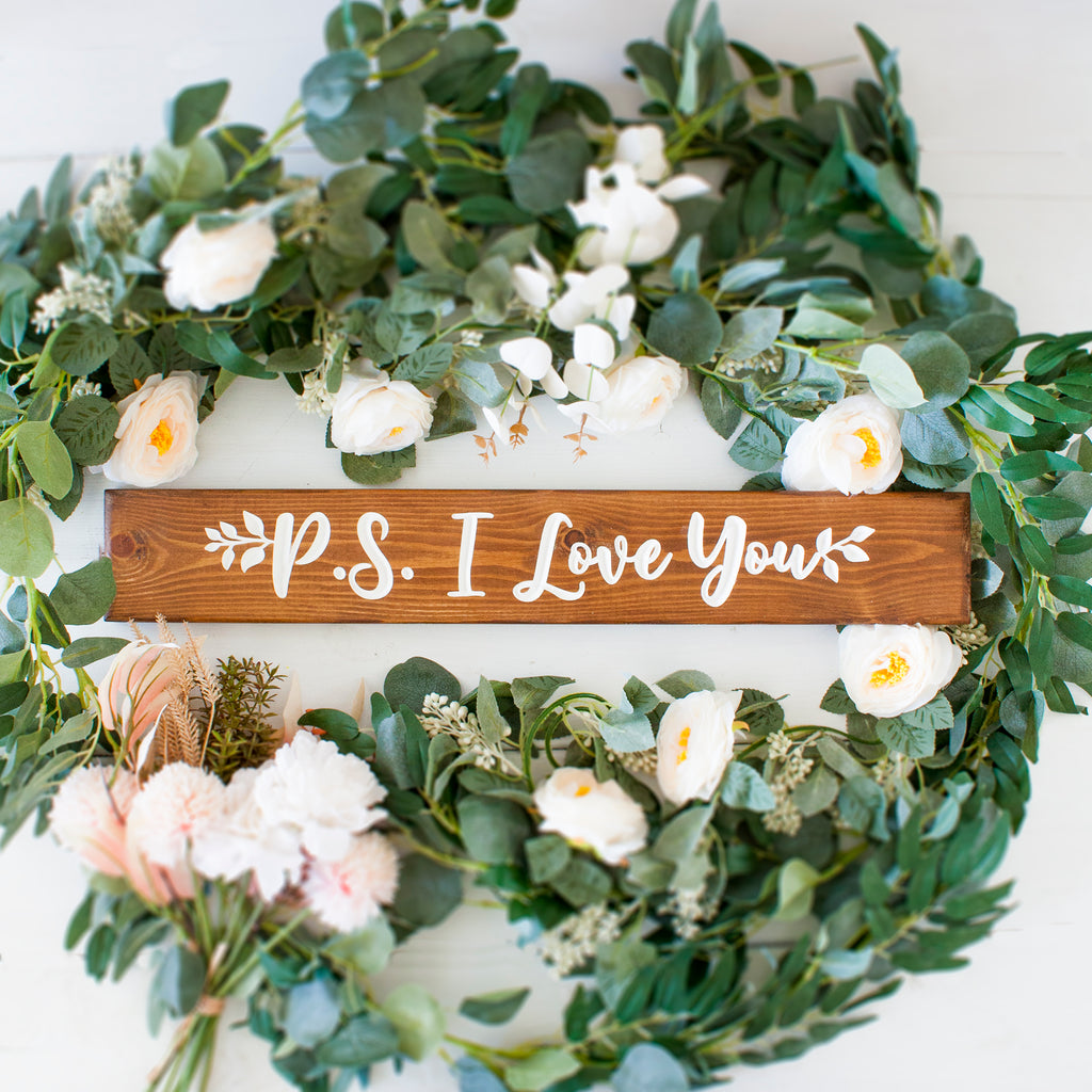 Engraved Wooden 'P.S. I Love You' Wedding Sign - 60 x 9.5 x 2cm