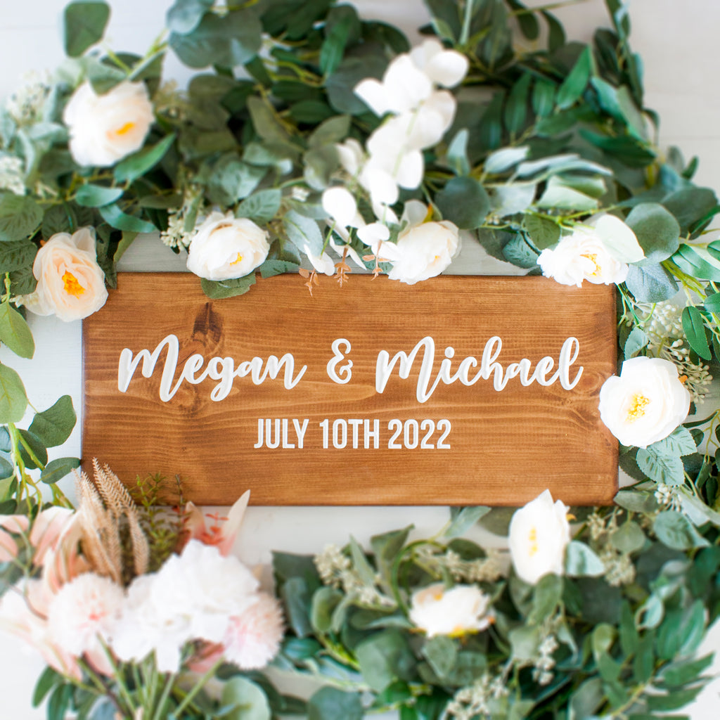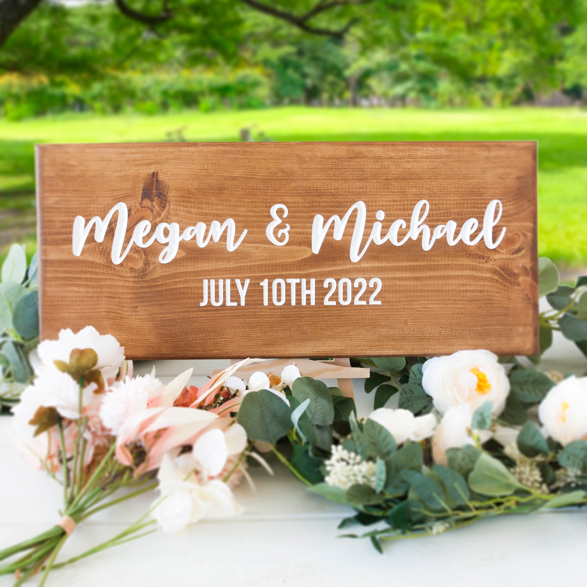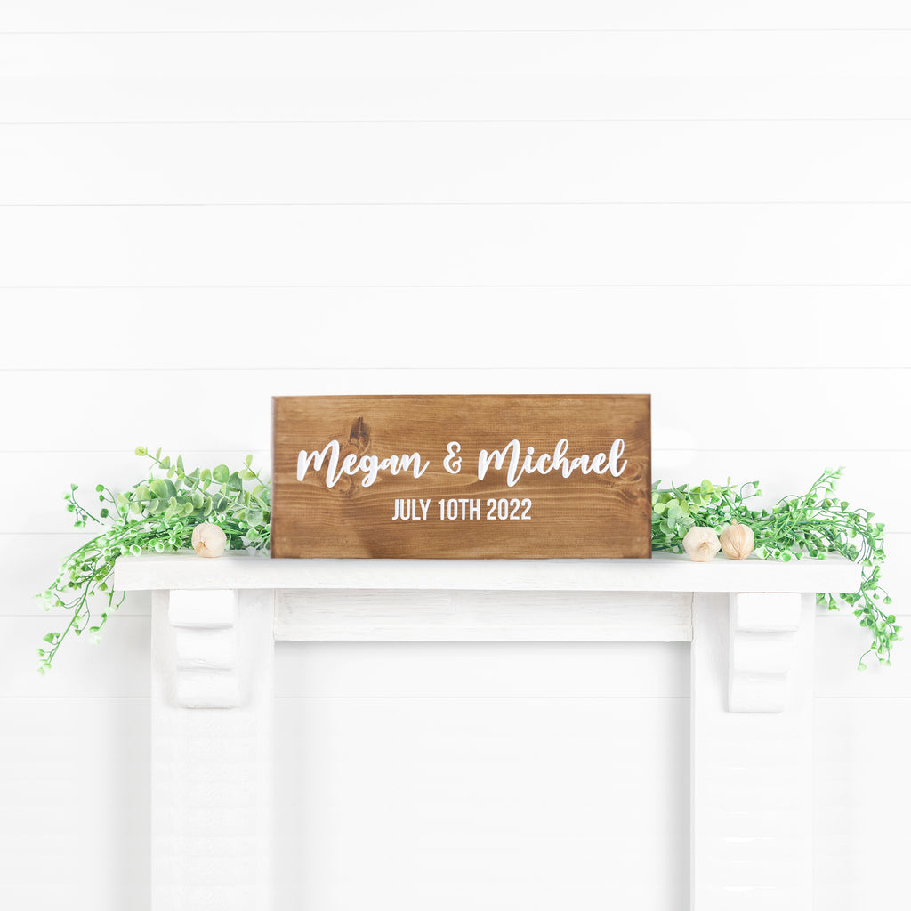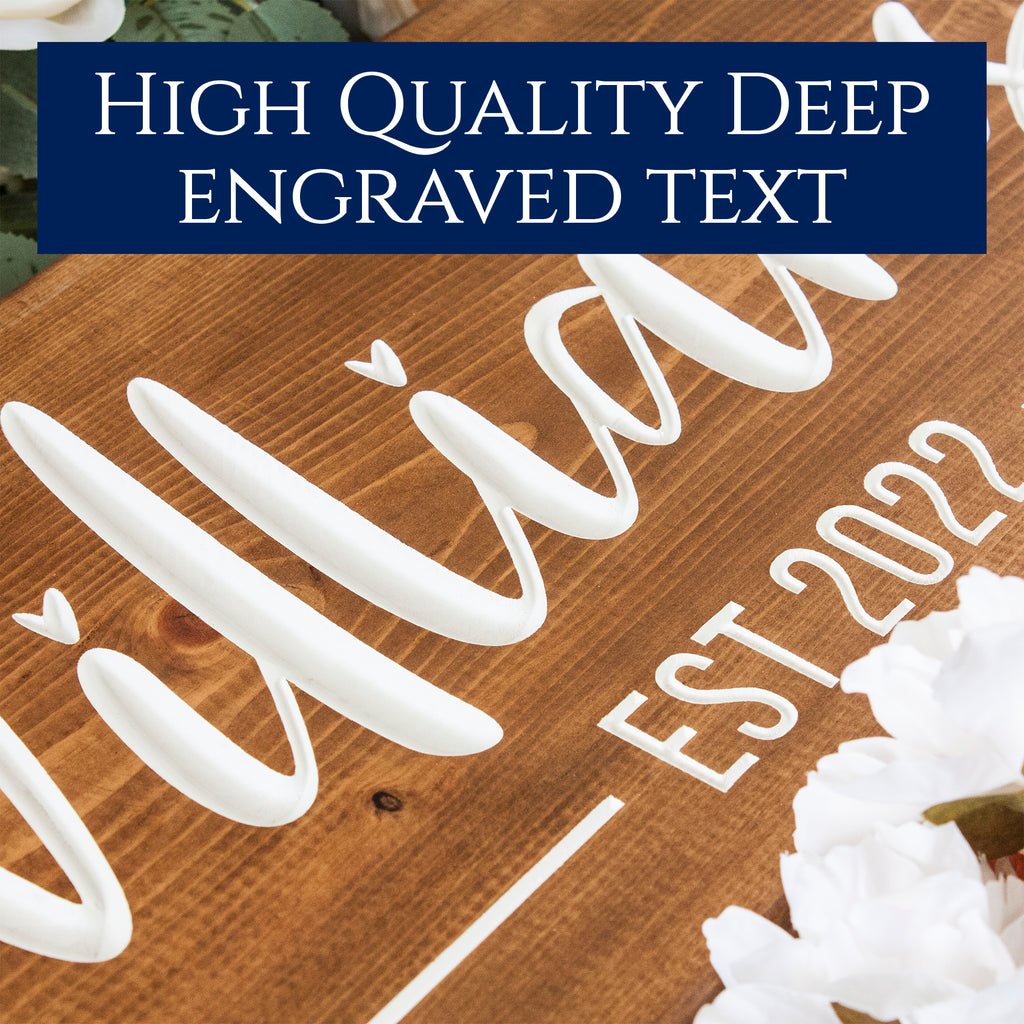 Personalised Engraved Wooden Names & Date Wedding Sign - 50 x 22 x 2cm